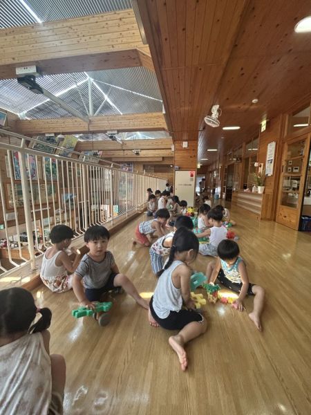 クラスの中で先生のピアノに合わせて歌を元気な声で歌ったり、季節の俳句を唱えたりしていました。また、遊びの時間では廊下で同じ年齢の違うクラスの園児達と遊んでいていいなと思いました。