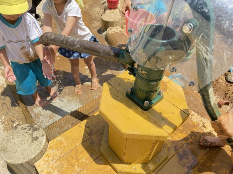 昔ながらの井戸水ポンプも遊具として取り入れられており、2-3歳くらいの子どもたちがむらがって遊ぶ様子はとても微笑ましかったです。