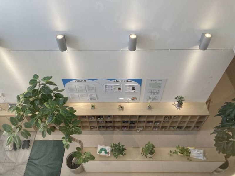 エントランスにも緑の植物があり、吹き抜けで開放感がありました。