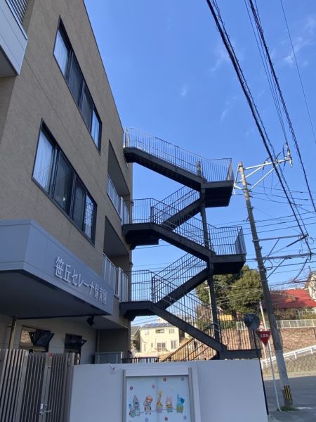 福岡市にあることから、子どもたちが活動するための場所を確保するのが難しいと考えられる中で、園を4階建てにし、屋上に園庭と複合遊具を設置するなどの工夫からとても開放感のある園舎が設計されていた。