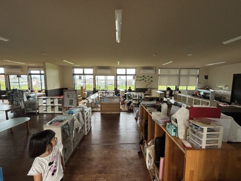 3歳~5歳が1つの大きな部屋で過ごしており、自然と異年齢保育が行われていた。子ども達は自由に遊びを選んだり、食事の席を選んだりしていた。同じ部屋で色んな年齢の子どもが過ごすため、年齢の違う子ども同士の関係性も見ることが出来た。