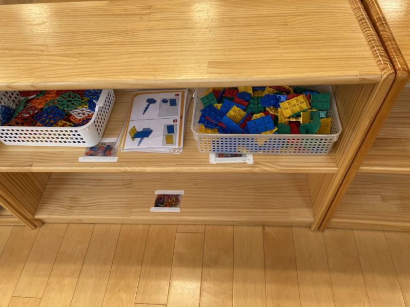 子どもたちが行動できるような工夫がされていた。どのおもちゃをどの場所に片付ければいいのか、写真を貼ってわかりようにしていたり、掃除の手順や道具の使い方が書いてあったり、注ぐお水の量が貼ってあったりした。